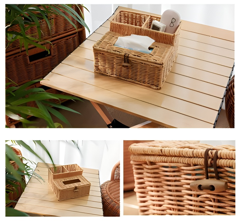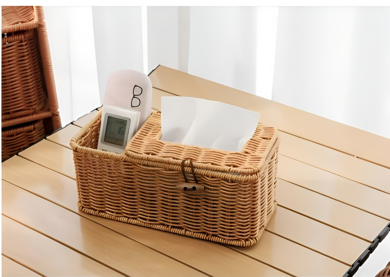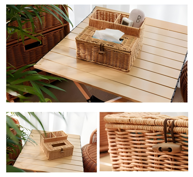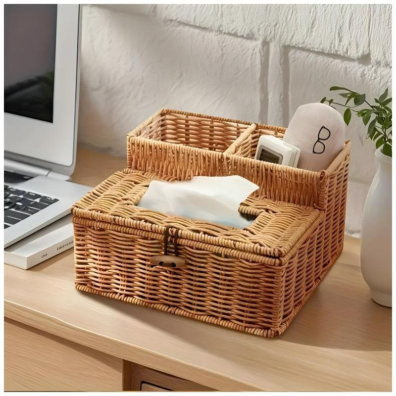 라탄 느낌 다기능 티슈케이스 거실 식당 테이블 수납함